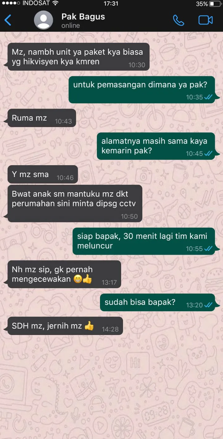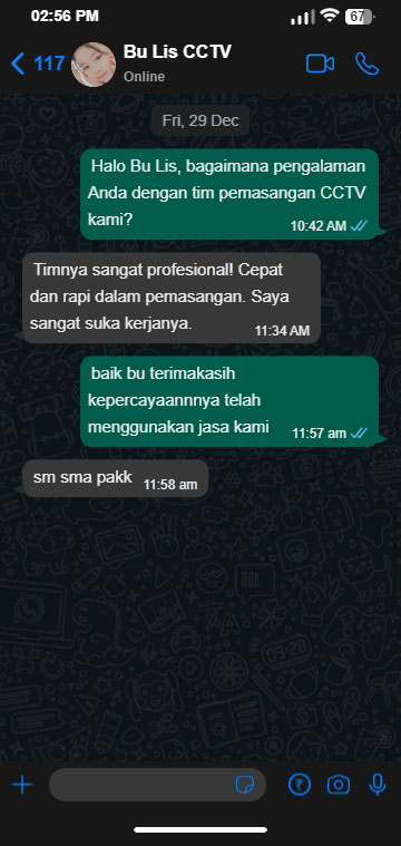 Paket CCTV wireless yang ditawarkan dari Mitra Sinergi ini memiliki fitur “Live View” yang mana dapat memantau situasi ruangan hanya dari smartphone saja. Layanan pemasangan dan harga jual CCTV wireless di MSI Sinergi ini dapat begitu profesional melayani klien, sekalipun dari individu dengan skala kecil. Hal tersebut karena memang para staf begitu menjunjung nilai kepercayaan dan komunikasi demi hubungan baik dengan klien.