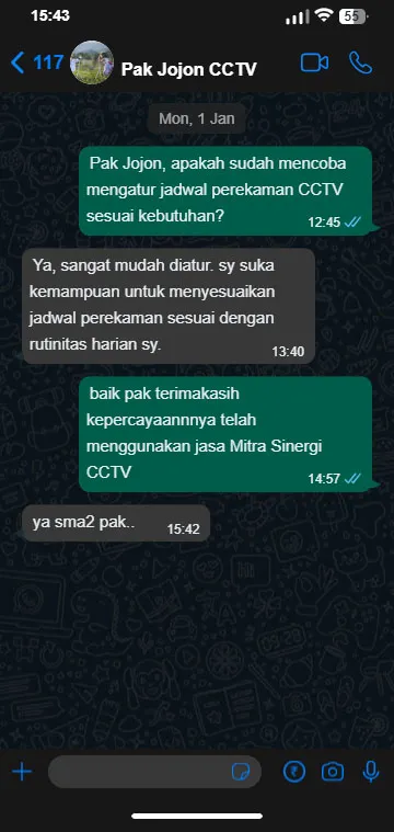 Mitra Sinergi CCTV berkomitmen untuk memberikan kenyamanan dan kemudahan dalam pengoperasian sehari-hari. Kami telah melayani perusahaan dan individu dari berbagai skala, mulai dari kecil, menengah, hingga besar. Oleh karena itu, dengan kepercayaan pelanggan dari wilayah Jakarta, Bogor, Depok, Tangerang, Bekasi, dan sekitarnya adalah pencapaian yang selalu kami jaga dengan memberikan layanan terbaik di kelasnya.