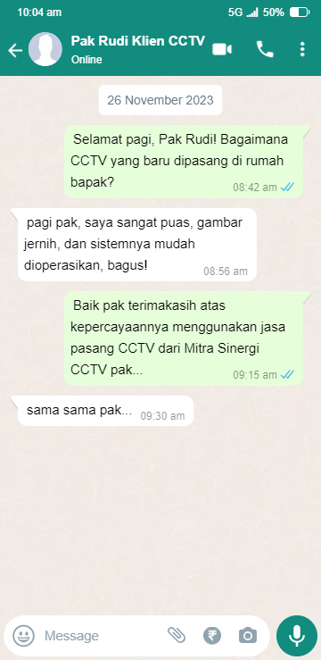 Mitra Sinergi CCTV berkomitmen untuk memberikan kenyamanan dan kemudahan dalam pengoperasian sehari-hari. Kami telah melayani perusahaan dan individu dari berbagai skala, mulai dari kecil, menengah, hingga besar. Oleh karena itu, dengan kepercayaan pelanggan dari wilayah Jakarta, Bogor, Depok, Tangerang, Bekasi, dan sekitarnya adalah pencapaian yang selalu kami jaga dengan memberikan layanan terbaik di kelasnya.